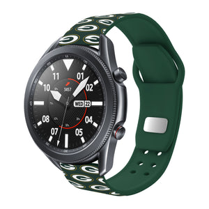 This Vegan, Non-Animal, Eco-Friendly, Waterproof, Hypo-Allergenic, soft touch watch band comes with our 1-year warranty against defects. Combine this with your favorite team logo and you have a band that expresses your affinity, in style. Compatible with Samsung Galaxy watch.