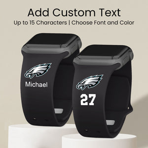 Make it you! Personalize your Apple Watch band by adding your name or number and it will appear right under the team logo. The size of the letters will change due to the number of letters in your name - see images for examples.